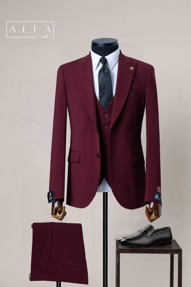 Elegante traje ajustado transpirable con cuello en V para hombre 80% lana 20% poliéster cómodo traje Formal