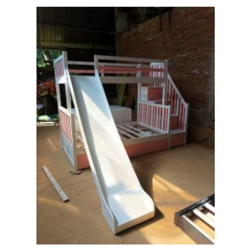 Estructura de cama para niños de tamaño doble con valla y puerta Material de suelo de madera