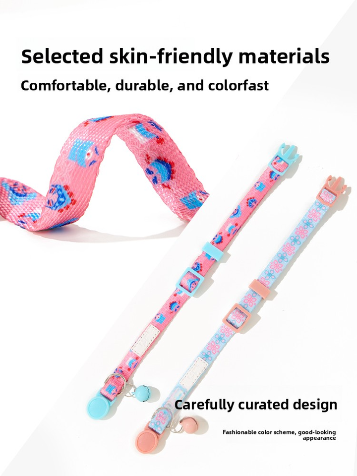 Collar para Mascotas Elegante con Patrón Sólido de Poliéster, Hebilla de Seguridad Desmontable con Remache, Anti-Ahogo, Campana Pequeña, Ajustable y Cómodo