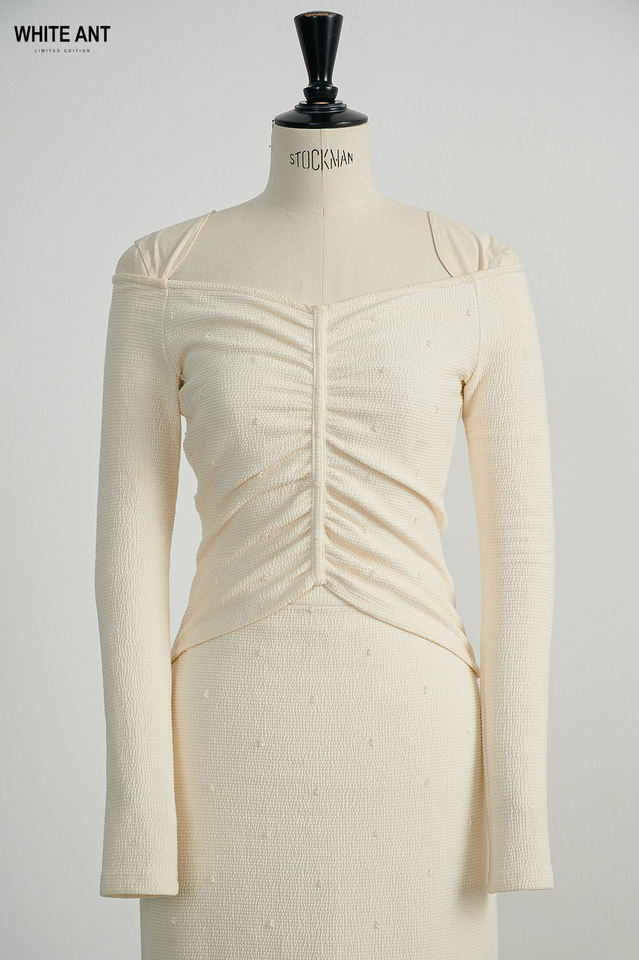 Tops de punto Donna de estilo elegante, Tops con hombros descubiertos para mujer, ropa de mujer de tela ecológica, Whiteant Vietnam