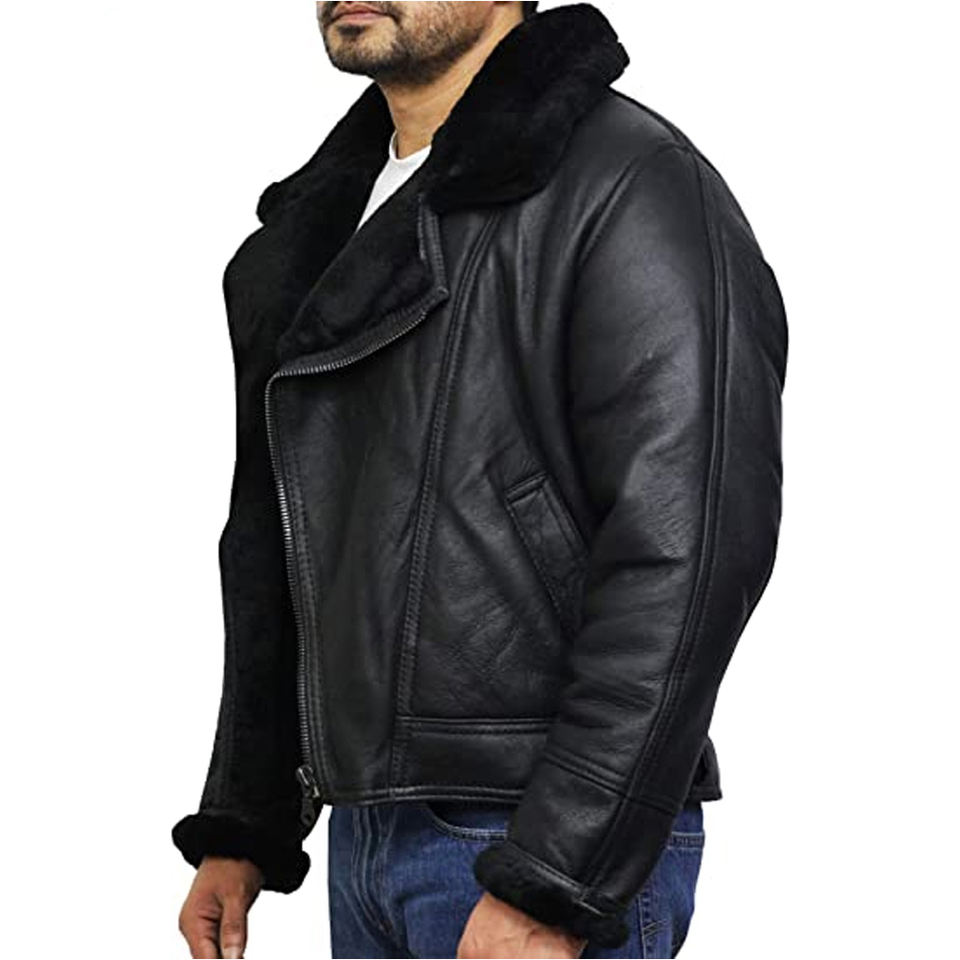 Chaqueta de Motociclista de Cuero para Hombre, Elegante, Talla Grande, Transpirable, Impermeable, con Ribete de Piel de Oveja, Ropa de Invierno, Personalizable, Estilo Urbano