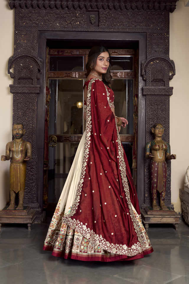 Cerrar Lehenga:Cordón con Zip