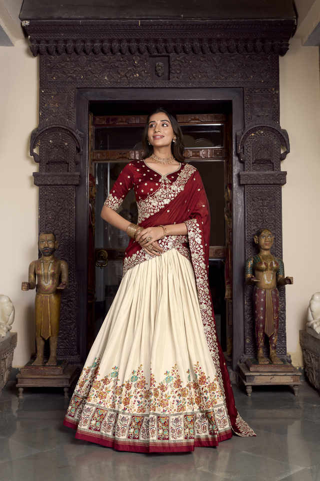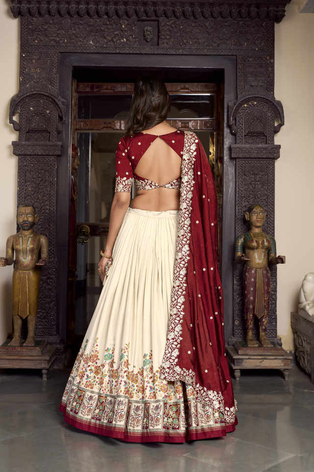 Trabajo Lehenga:Impreso con trabajo de la hoja
