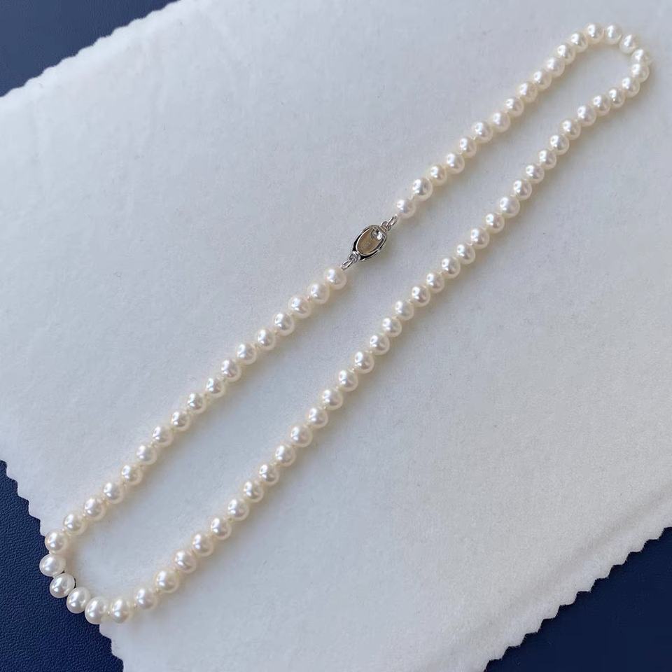 Elegante Collar con Hebilla Plateada y Perla de Agua Dulce Casi Redonda, Cadena para Clavícula con Brillo Intenso