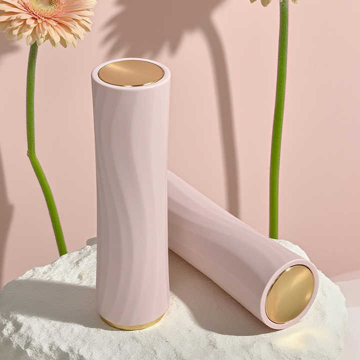 Envases de pintalabios texturizados elegantes Tubos de pintalabios de plástico cilíndricos vacíos Embalaje de pintalabios suave