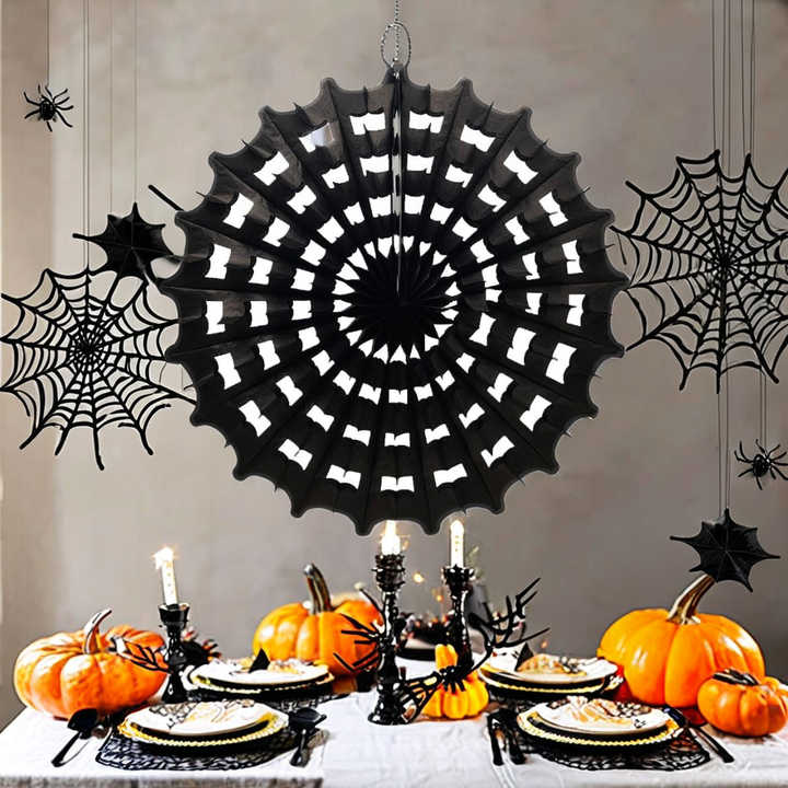 Decoraciones Elegantes de Abanicos de Papel de Seda de 40 cm de Altura, Impresión Offset, Venta al por Mayor, Artículos de Mesa para Fiestas de Halloween, Navidad y Acción de Gracias