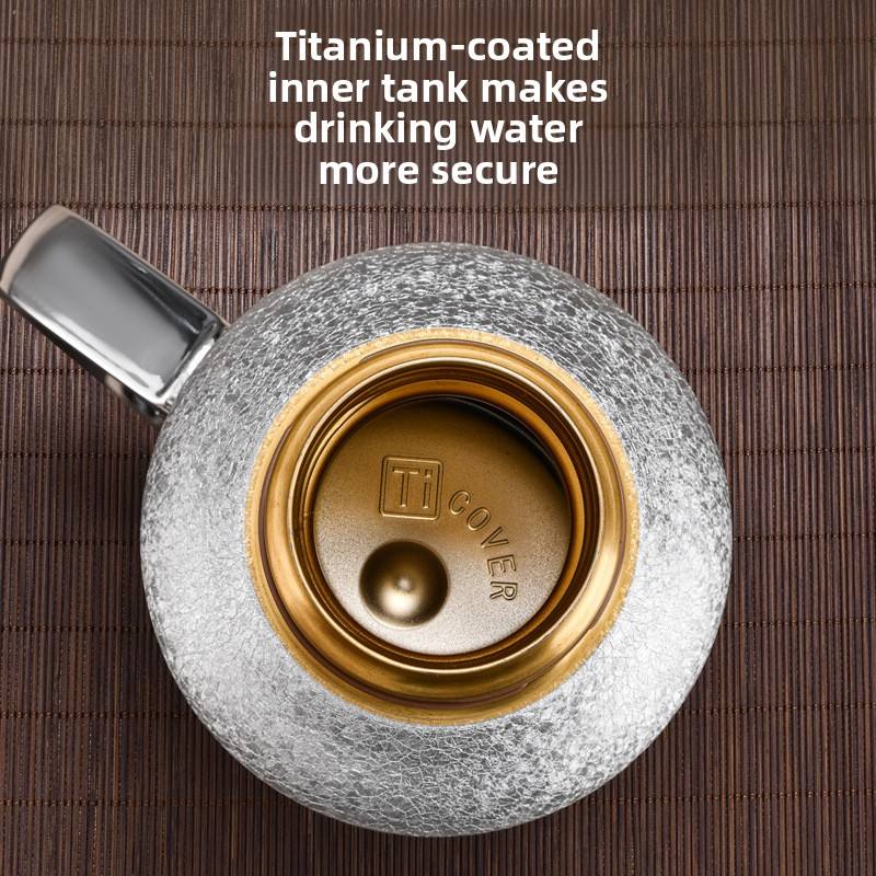 Elegante tetera con revestimiento de titanio, separador de agua y té integrado, diseño portátil, lista para usar