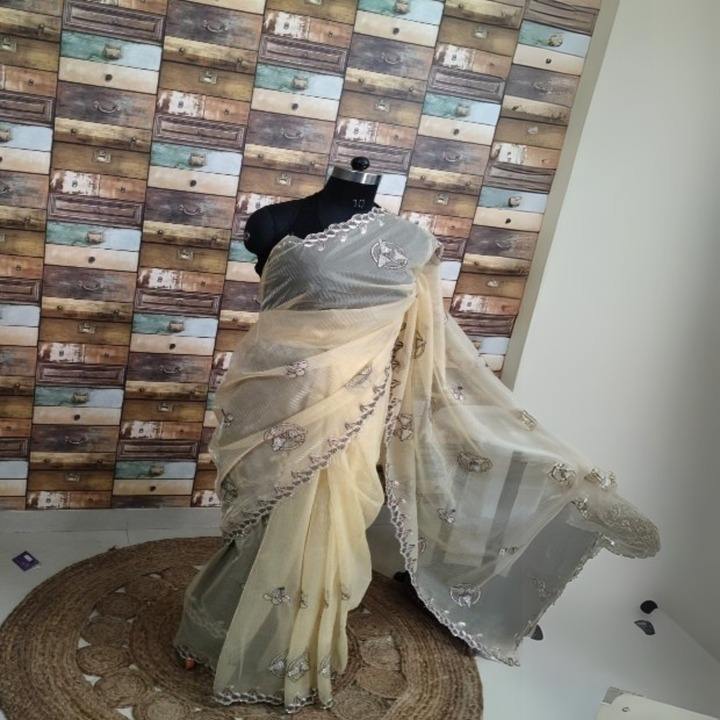 Elegante Sari de seda tradicional indio y pakistaní con intrincados diseños bordados Ropa de moda