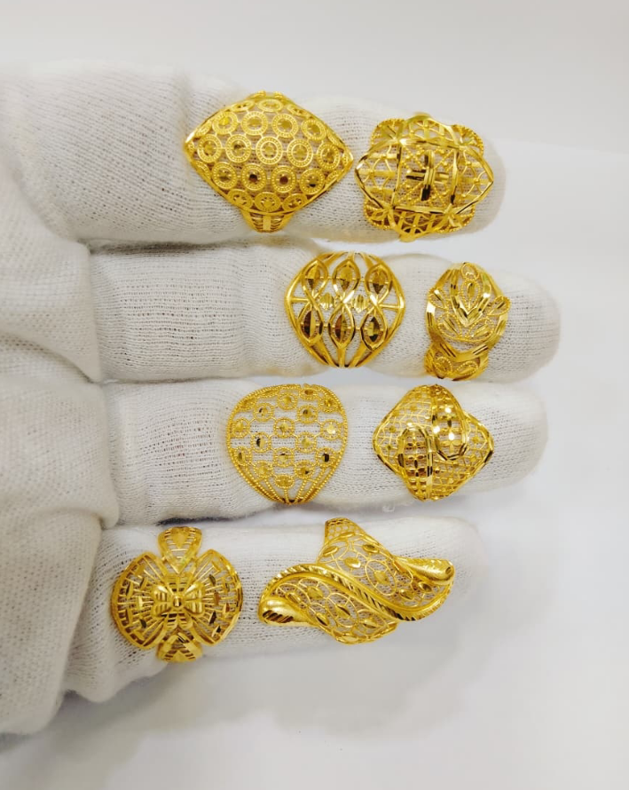 Anillos Elegantes de Diseño Turco Clásico para Mujer, con Intrincado Patrón de Filigrana, Estilo Oriental, Grandes y llamativos, de Oro Sólido de 22K