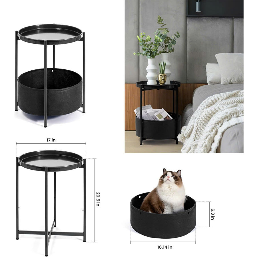Elegante mesa de metal de dos niveles con diseño funcional para decoración de libros o café