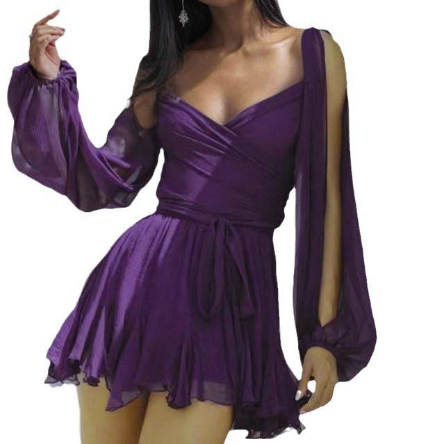 Elegante Vestido Mini de Cuello en V, Color Sólido, con Capa Transparente y Cintura Impero para Mujer, Ropa de Noche