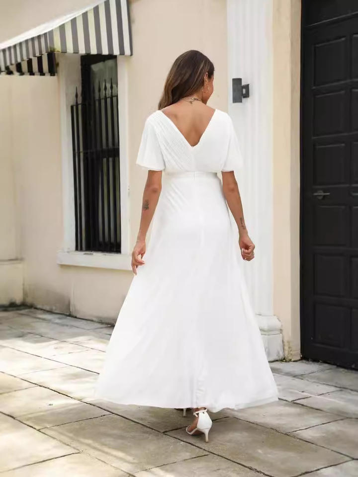 Elegante cuello en V imperio cintura alta hendidura flutter manga gasa dama de honor mujeres embarazadas vestidos largos