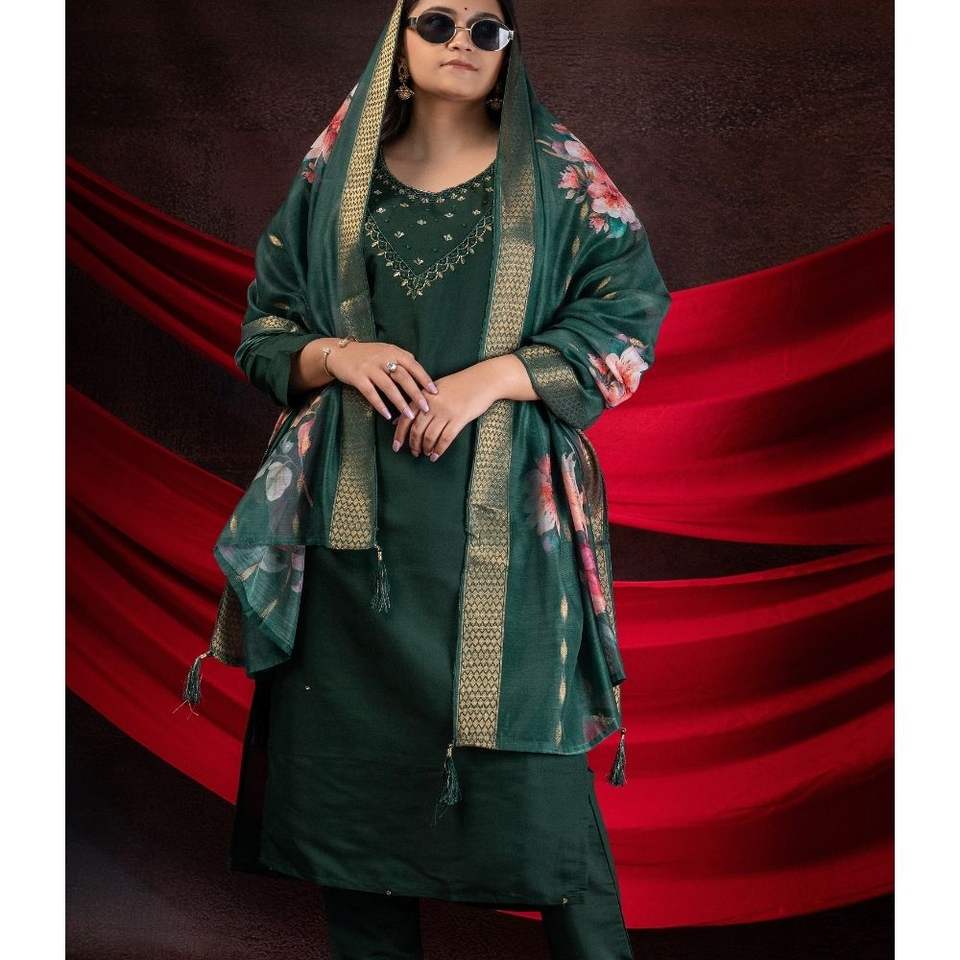 Tipo de tejido:Top + Parte de abajo-Viscosa Roman Silk Dupatta-Viscose chanderi