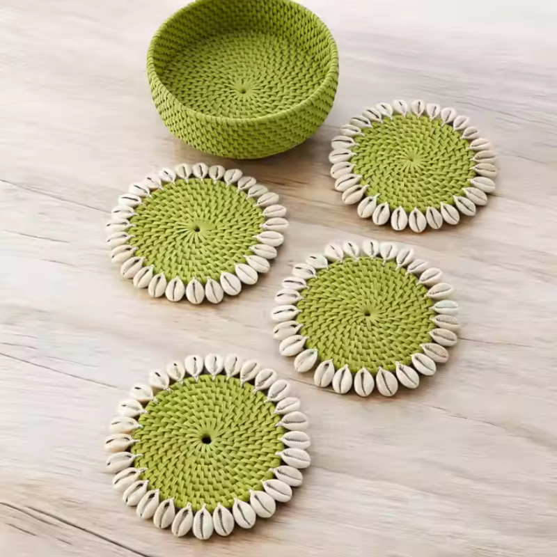Posavasos de café de ratán blanco elegante con diseño floral Vajilla casera elegante hecha a mano de artesanías de mimbre de Vietnam
