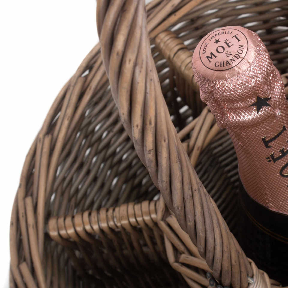 Elegante cesta de mimbre para bebidas para eventos especiales para guardar copas de champán y flautas