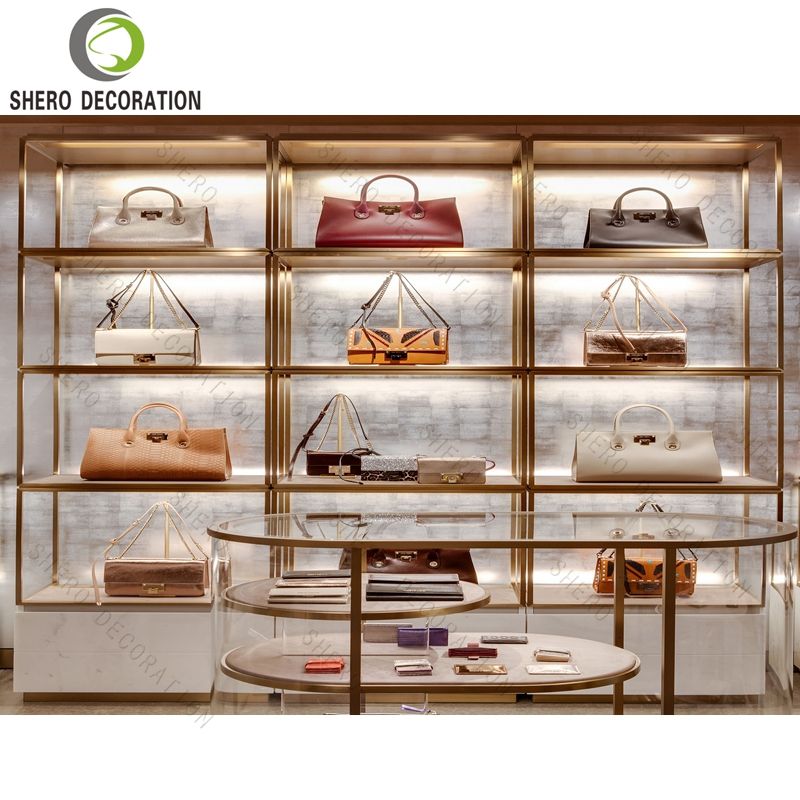 Uso:Vitrina de pared para tienda de bolsos, Decoración interior de tienda