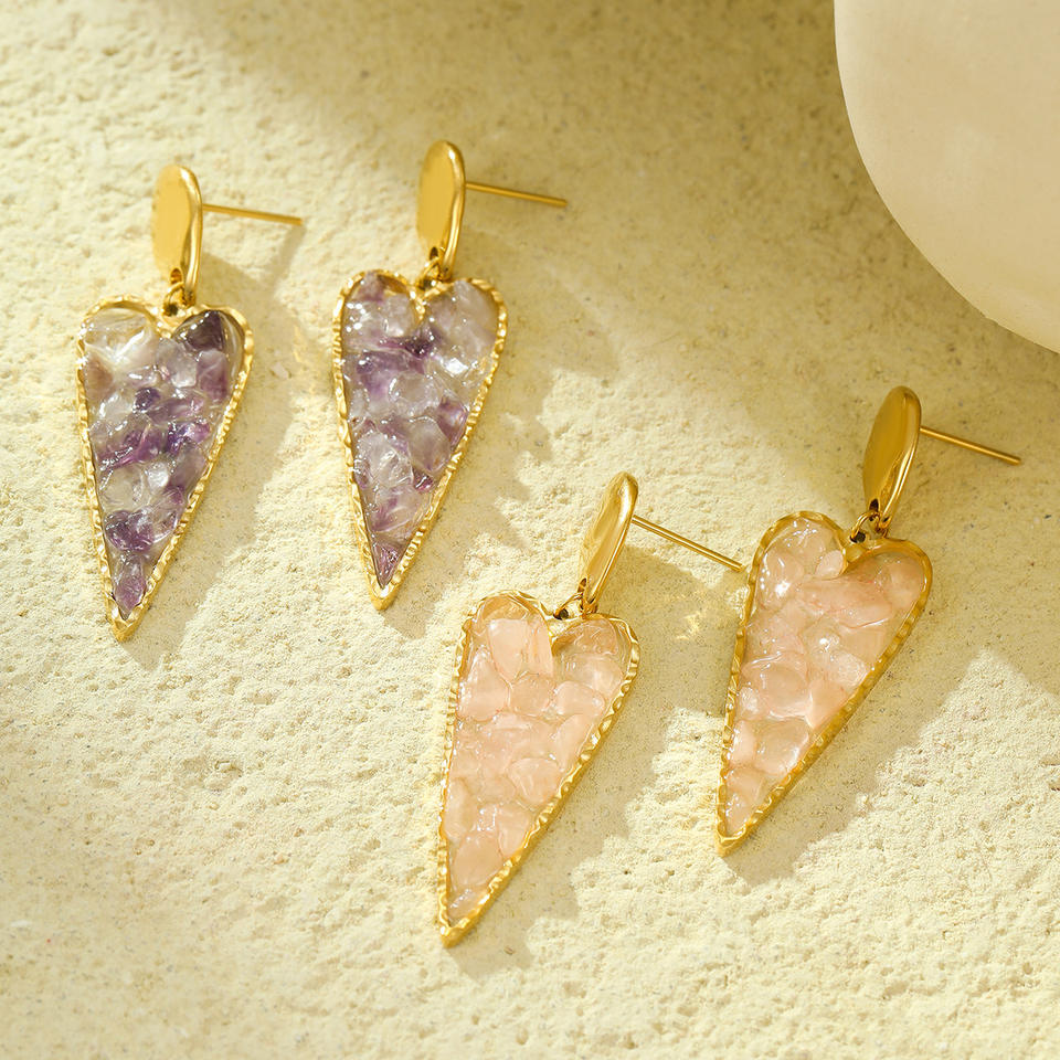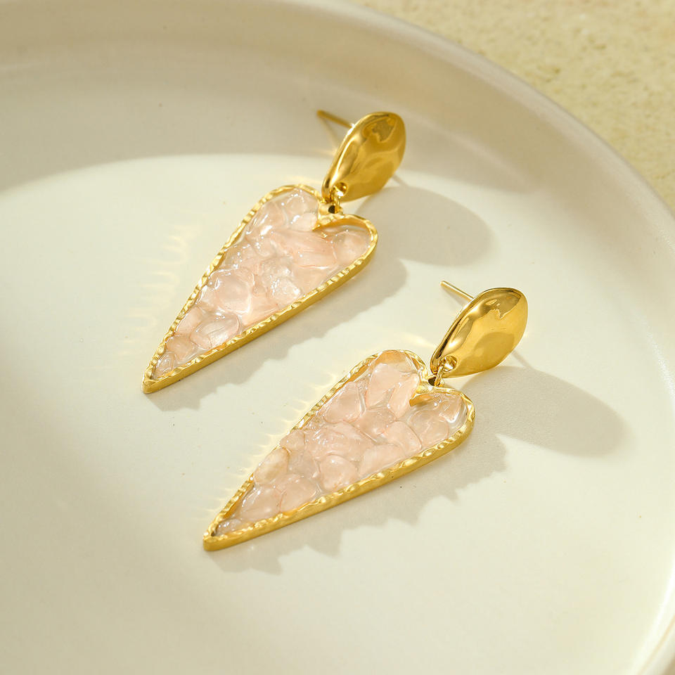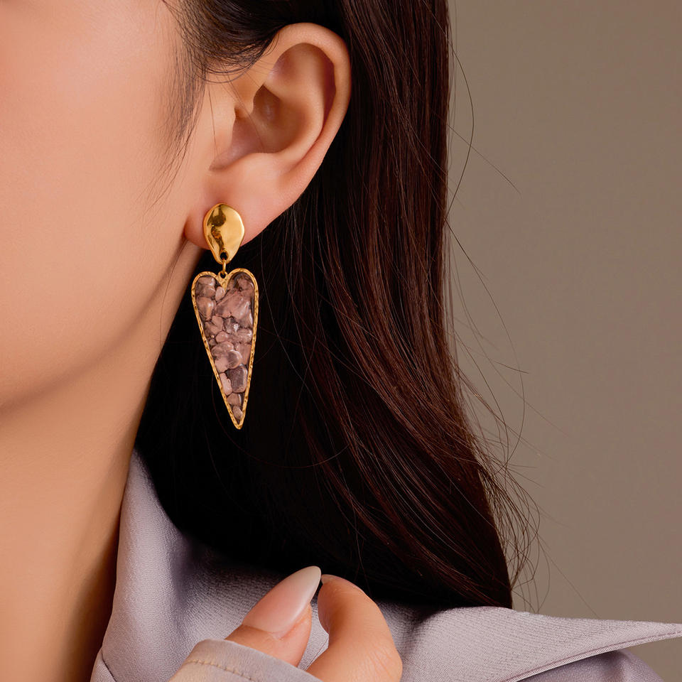 Joyería elegante de moda para mujer, pendientes de gota geométricos, pendientes de corazón de piedra Natural de acero inoxidable de 18K
