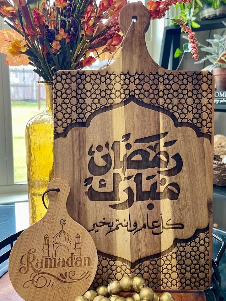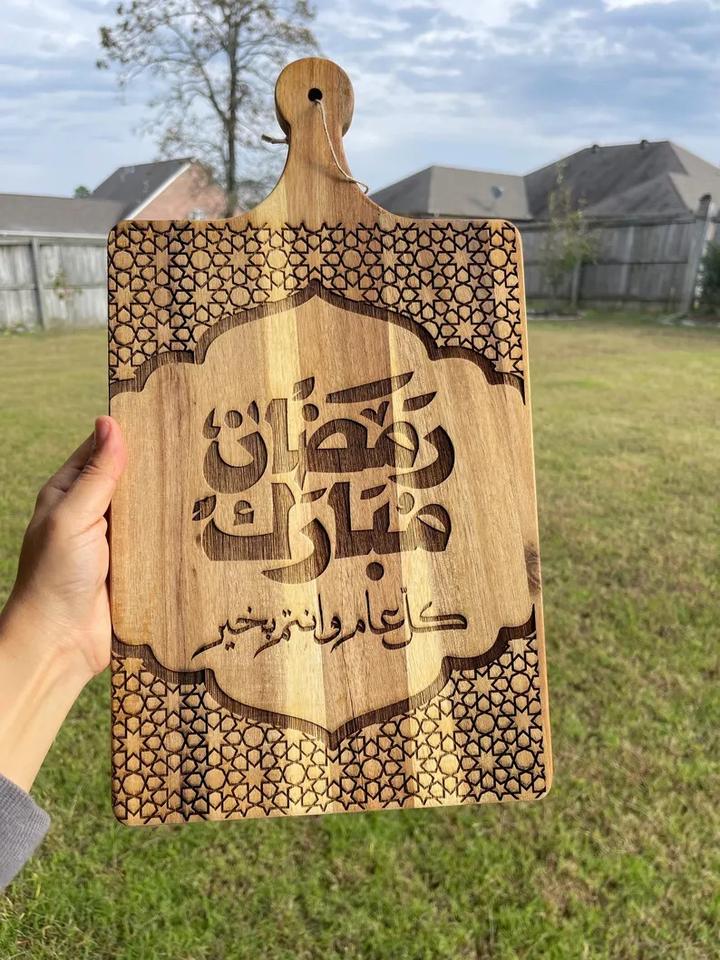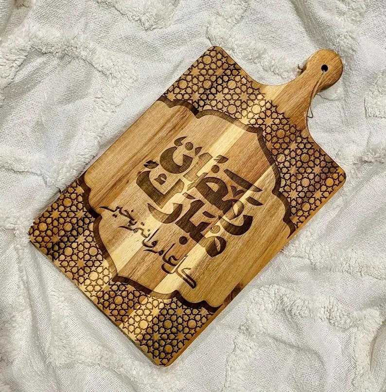 Palabra clave:Tabla de cortar de madera hecha a mano con temática de Ramadán