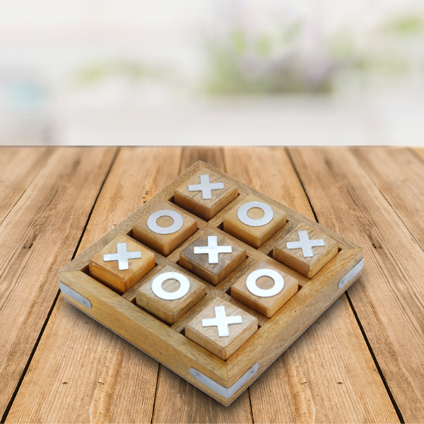 Elegante tablero de juego de madera Tic Tac Toe, pieza de mesa decorativa hecha a mano para regalo en casa