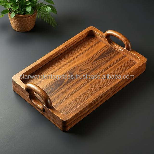 Elegante bandeja de madera para funciones de boda, celebraciones, café, té, desayuno y exhibición de alimentos