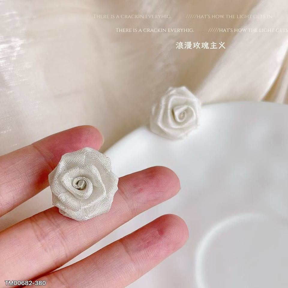 Pendientes de tuerca de gota de rosa de punto de encaje de cobre plateado elegantes y lujosos, joyería de latón romántica para regalo