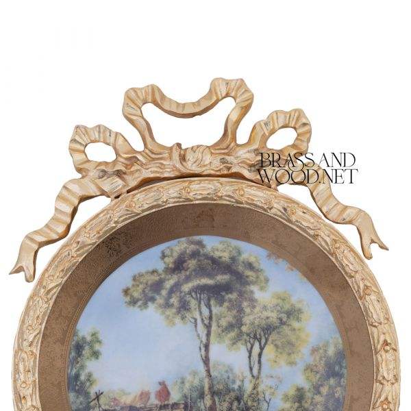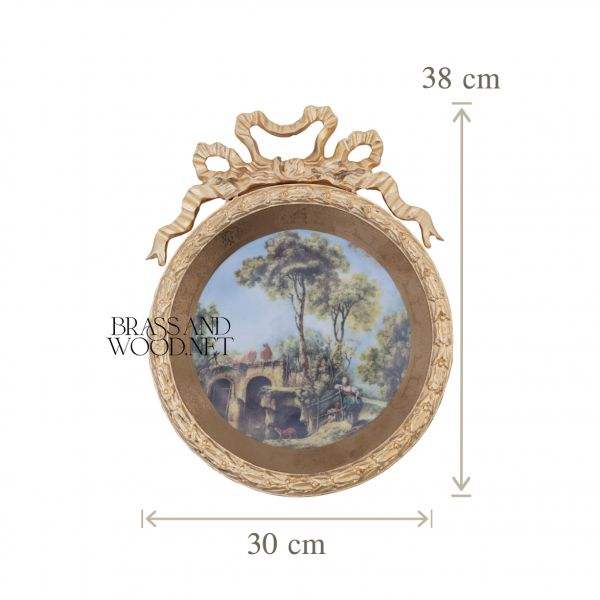 Elegante marco redondo para colgar en la pared decorativo vintage de latón dorado con ilustraciones de paisaje diseño de cinta adornada decoración del hogar