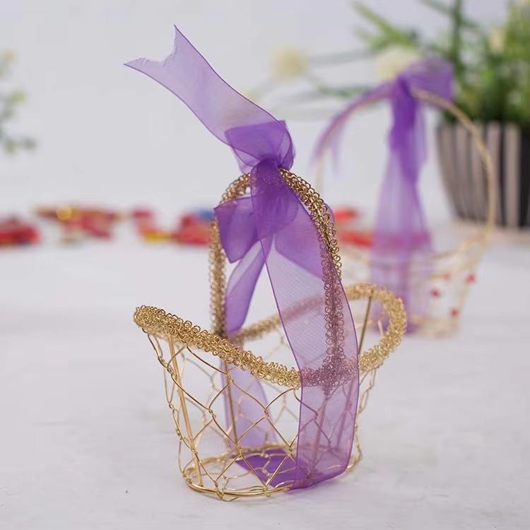 Descripción:Cesta elegante adornada con intrincados patrones de filigrana