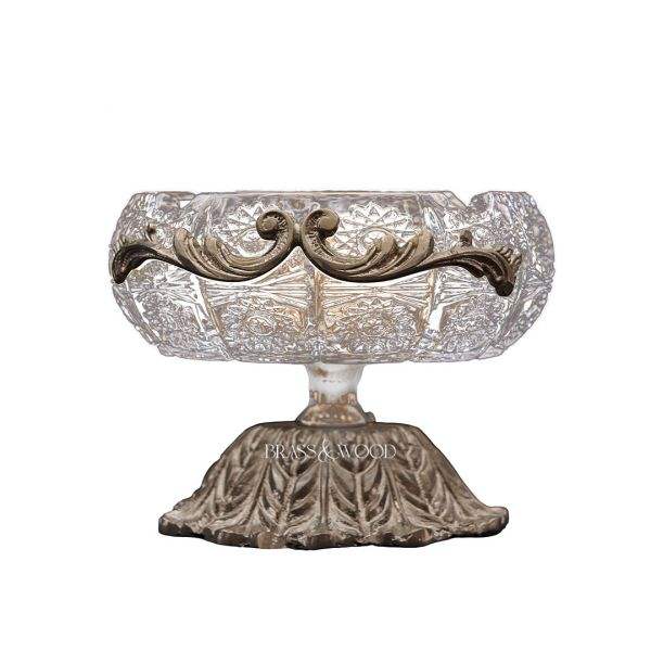 Elegante cuenco decorativo de latón plateado con diseño de cristal accesorio de lujo hecho a mano para la decoración del hogar y acento atemporal
