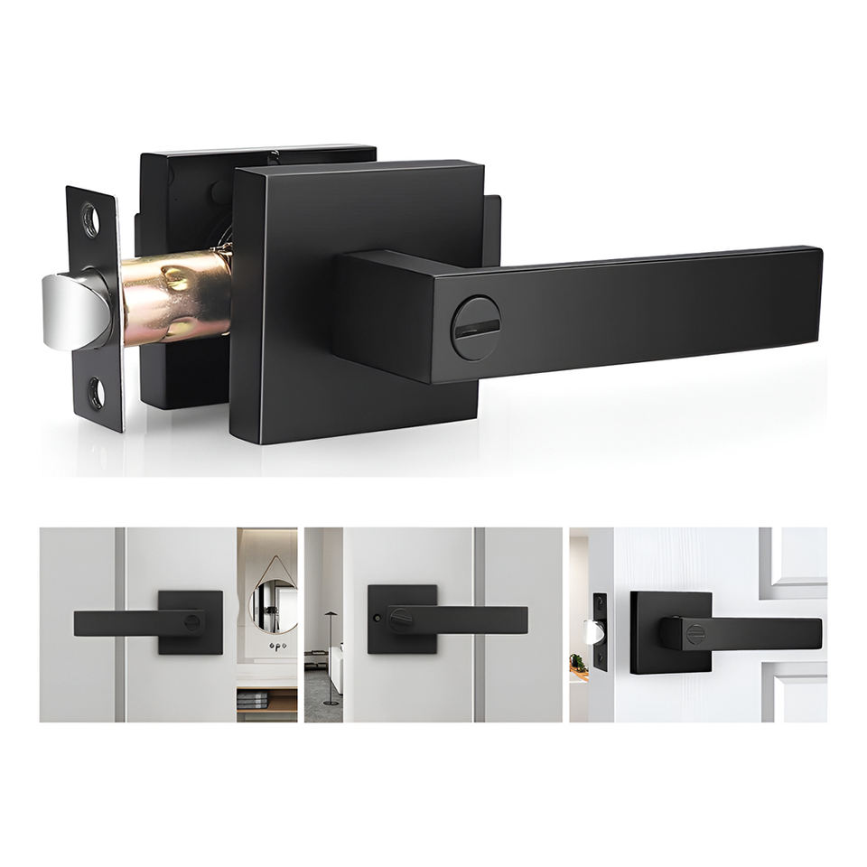 Cerradura de Alta Resistencia Elegate con Manija Cuadrada para Muebles de Baño, Color Negro, Modelo FEL.MA2001.BN.NG, Hecho en China