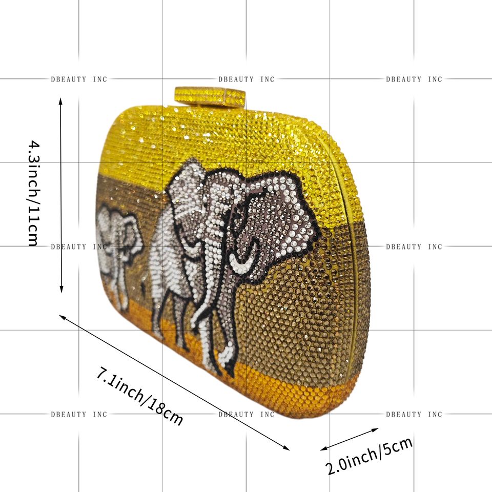 Bolso de mano con diseño de elefante y diamantes de imitación para mujer, monedero de noche de cristal de lujo, bandolera para fiesta de banquete