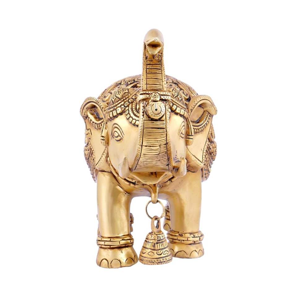 Estatuilla de latón con tronco de Elefante Dorado de tamaño mediano, diseño étnico indio único, artículo decorativo religioso para el hogar, pulido a mano