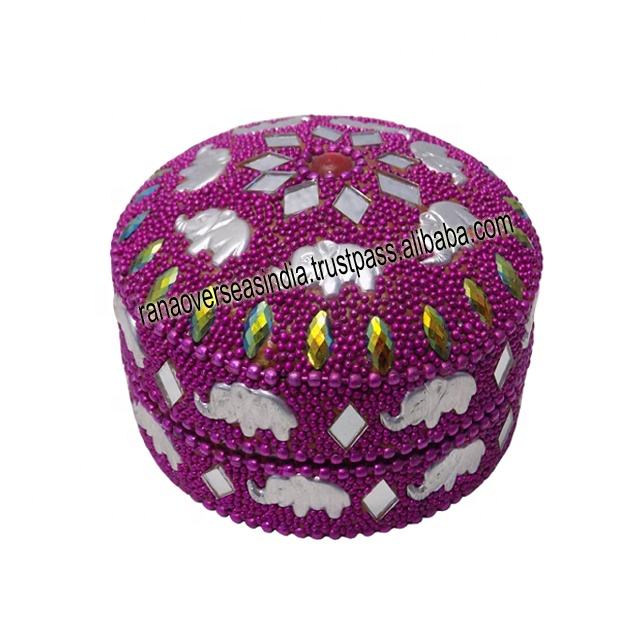 Caja multiusos con diseño de elefante y espejo, con tapa de hierro para Sindoor y almacenamiento de joyas