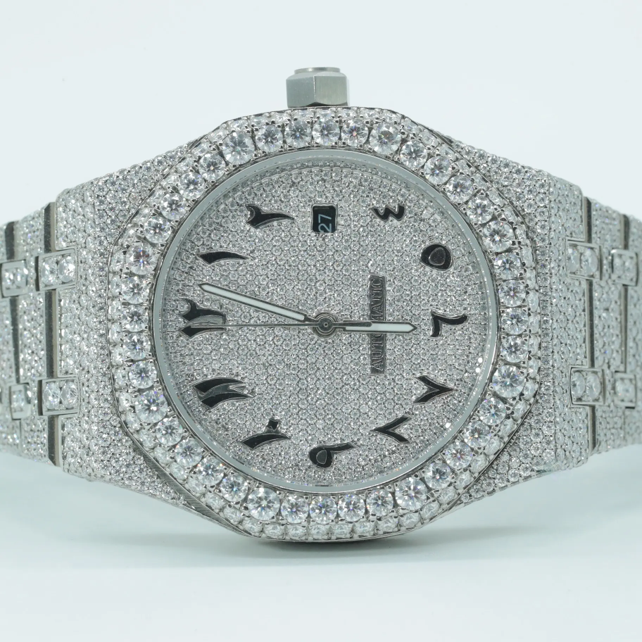 Elevate Men's Style Solid 925 Sterling Silver Plated Hip Hop Watch Silver Moissanite Diamond Dial Platinum Diseñado para el estilo