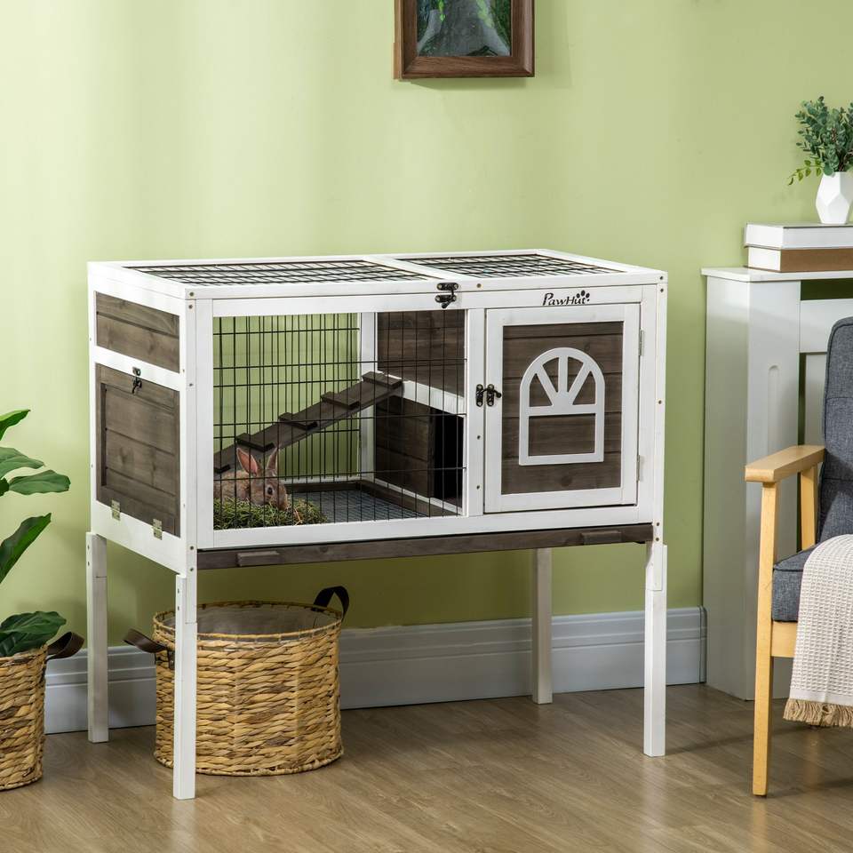 Casa elevada de madera para conejos y cobayas, mueble para mascotas