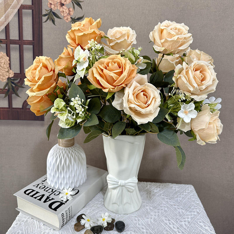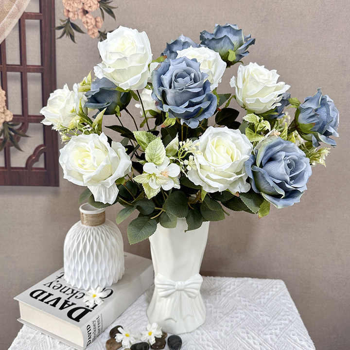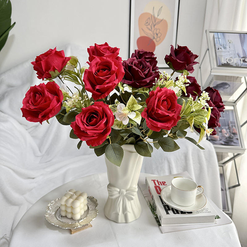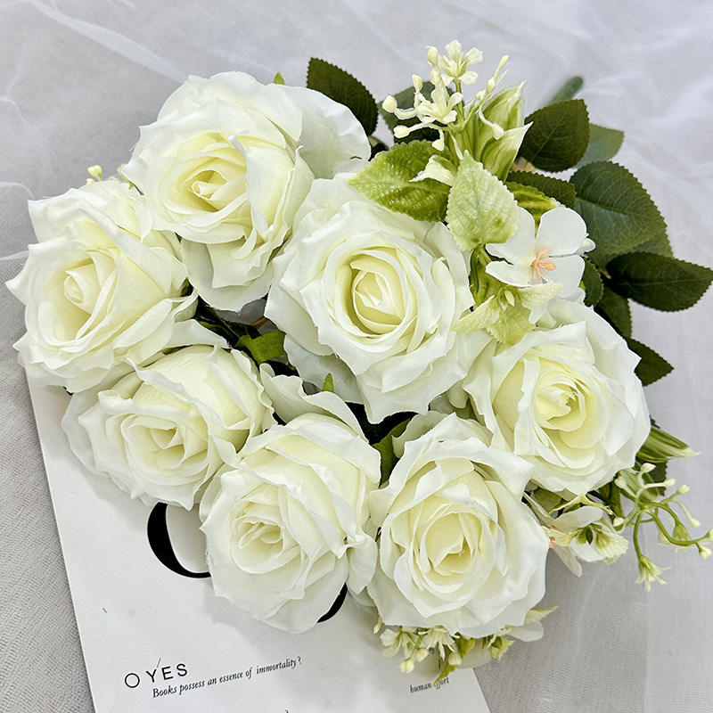 Once rosas grandes simuladas por ramo flores de seda para boda salón de bodas decoración de pared de fondo
