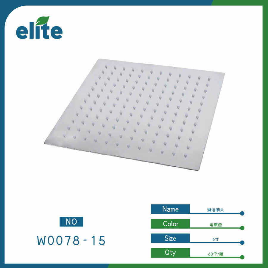 Cabezal de Ducha Superior Elite de 6 Pulgadas, Acero Inoxidable, Ultra Delgado, Cuadrado, Montado en la Pared, para Baño