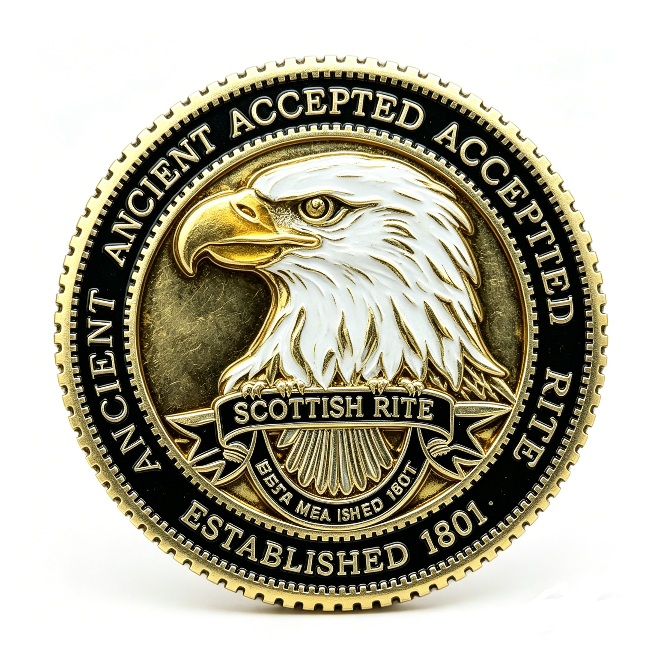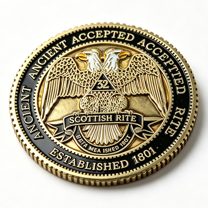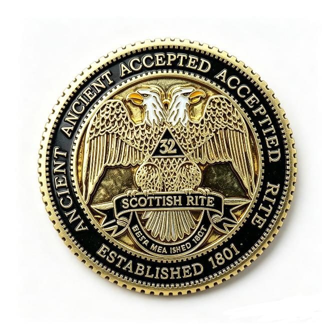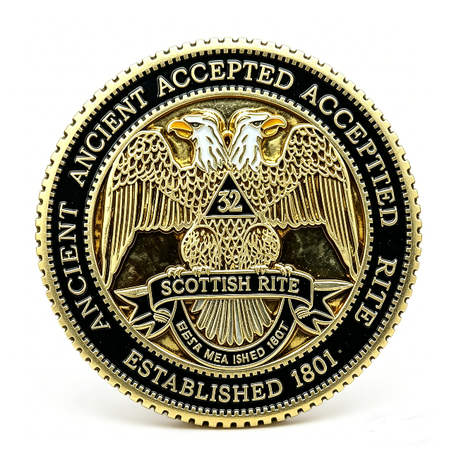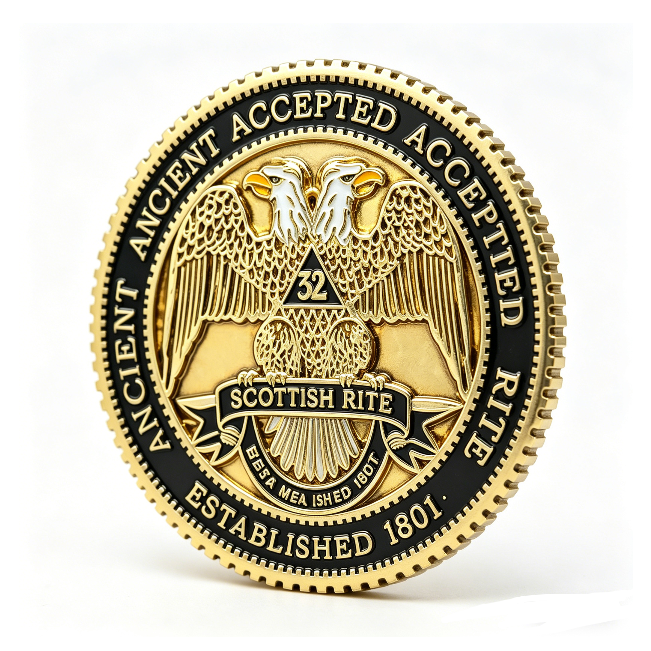 Moneda Conmemorativa de Aleación de Zinc con Impresión UV y Esmalte, Diseño de Águila de Dos Cabezas del Rito Escocés, Regalo para Navidad y el Día de la Madre