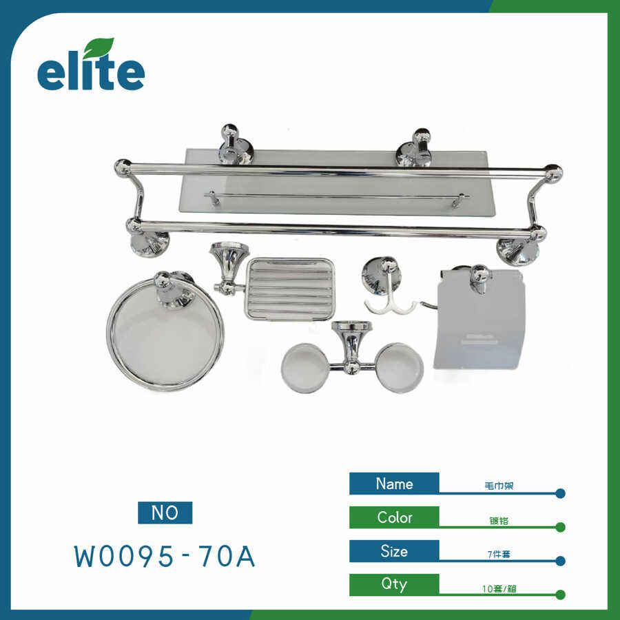 Elite Towel Rack Set 7-Piece Chrome Wall-Mounted Bathroom Hardware Contemporary Design