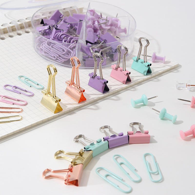 Ellen Brook 1 Caja de Clips Creativos para Encuadernación y Pioneses en Oro y Oro Rosa, Lindos Pioneses en Espiral para Papel, Set Combinado de Oficina con Pioneses y Clips