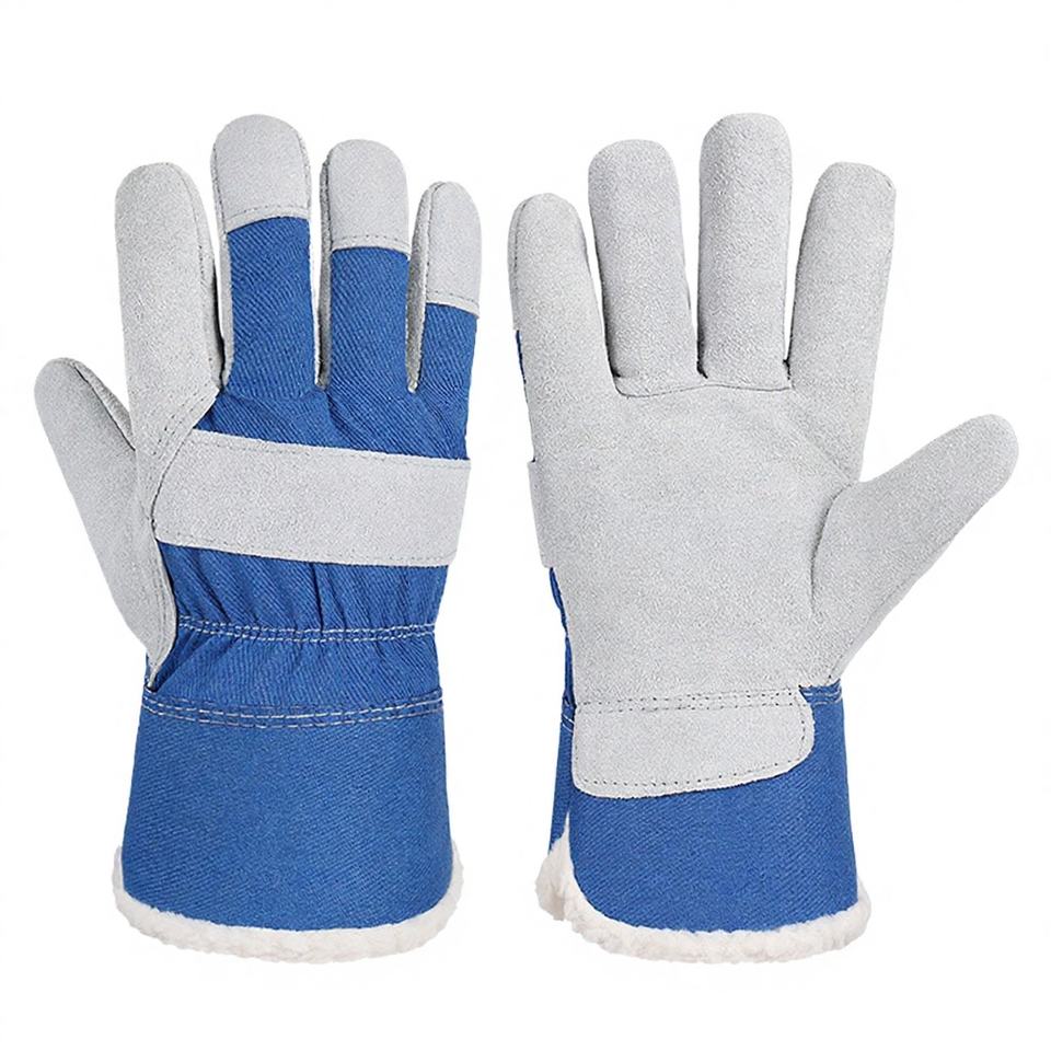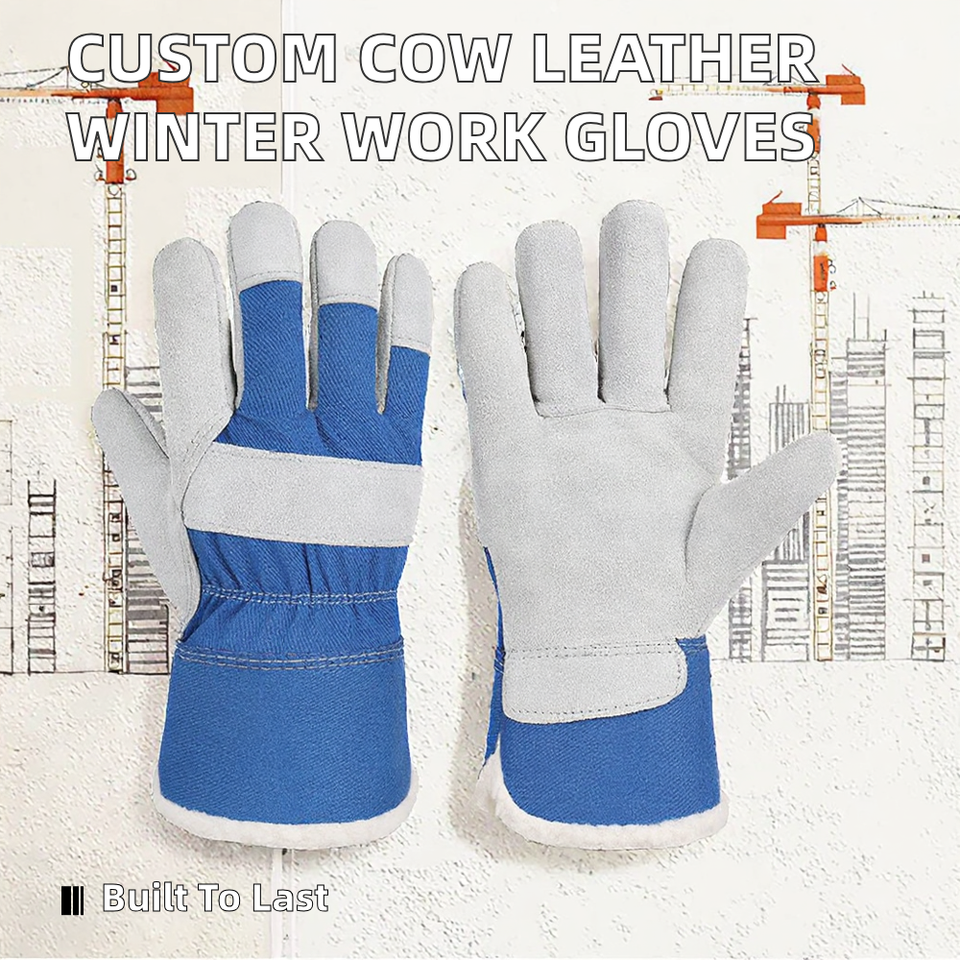 Guantes de Trabajo de Cuero Vacuno de Alta Calidad con Logotipo Personalizado para Venta al por Mayor, Guantes de Invierno Cálidos de Cuero de 2 cm de Grosor Resistentes a la Abrasión