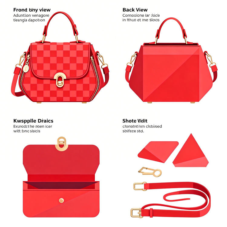 Bolso Satchel con Diseño a Cuadros en Relieve, Bolso de Mano Rojo de Cuero PU Resistente, Bolso Bandolera con Cierre Giratorio