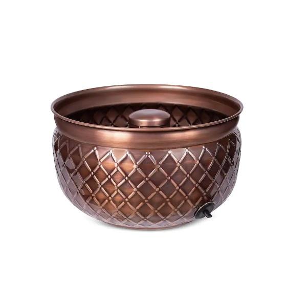 Cuenco de manguera de cobre con acabado liso y borde de diseño en relieve para el hogar, jardín, riego de plantas, uso decorativo, cuenco de manguera de jardín de cobre