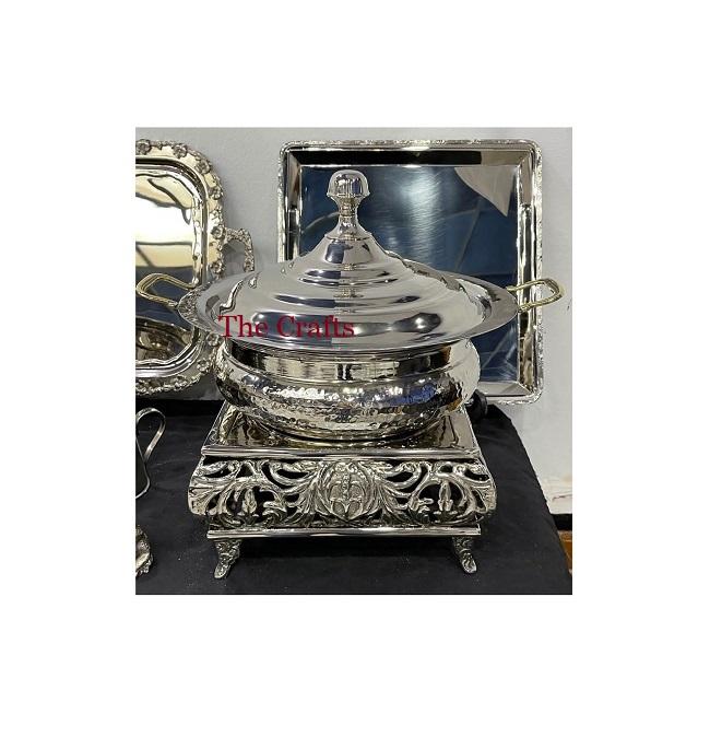 Chafing Dish de Acero Inoxidable y Latón con Diseño Atractivo, Tamaño y Logotipo Personalizables, Alta Calidad para Uso en Buffet de Hotel