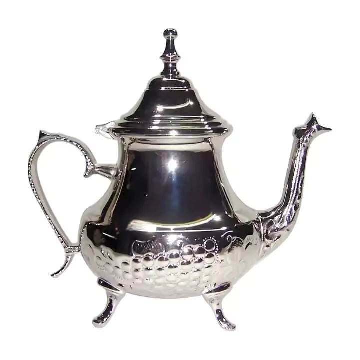 Tetera de Metal con Diseño en Relieve, Plateada, Cafetera Árabe Dallah Hecha a Mano, Utensilios de Cocina para Mesa, Teteras y Cafeteras