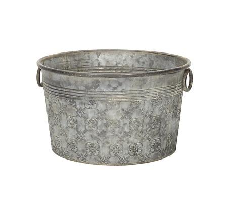 Maceta de Metal Galvanizado con Relieve y Asas Laterales, Estilo Rústico, para Interiores y Exteriores, Venta al por Mayor