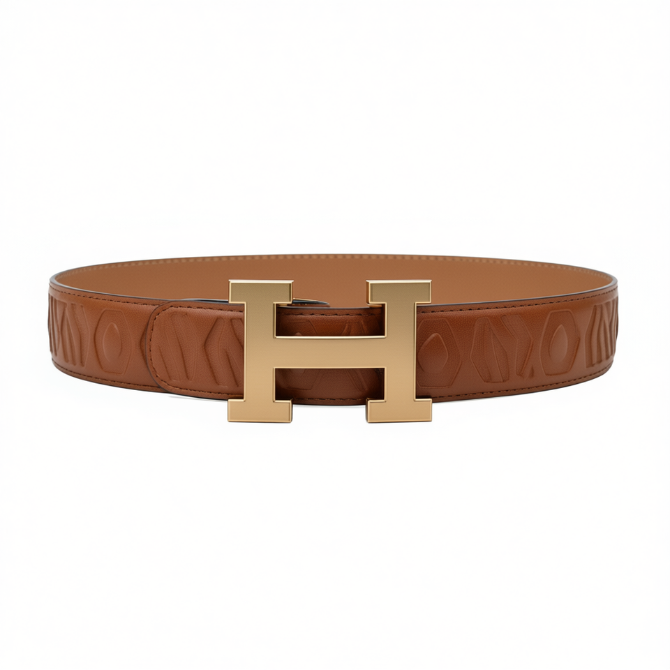 Cinturón de Cuero PU Repujado de 3.3cm con Hebilla Grande en Forma de H, Cinturones de Moda para Mujer