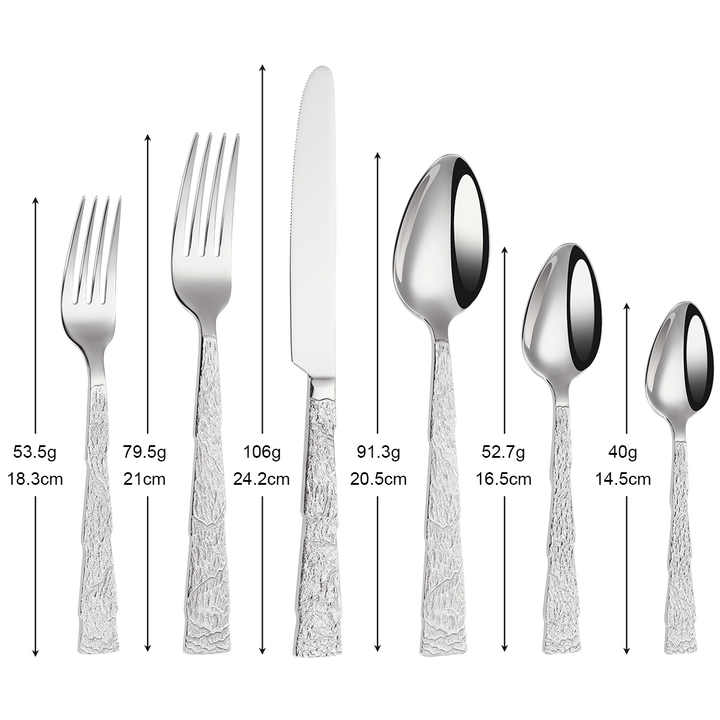Juego de cubiertos de acero inoxidable con diseño de piedra en relieve
