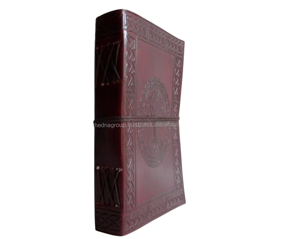 Diario de cuero de árbol en relieve Cuaderno en relieve de árbol de la vida genuino con cierre de cuero Cuaderno de bocetos de papel reciclado hecho a mano