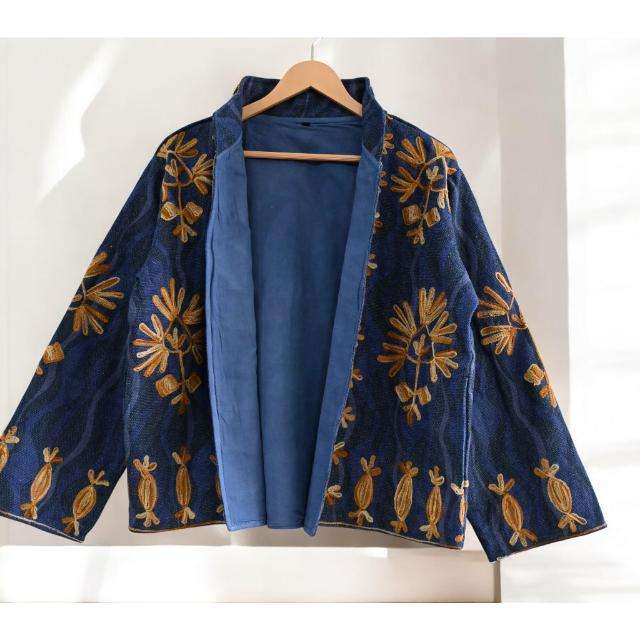 Chaqueta de lona bordada para mujer Prendas de abrigo de lujo hechas a mano para looks de noche, festivos y formales