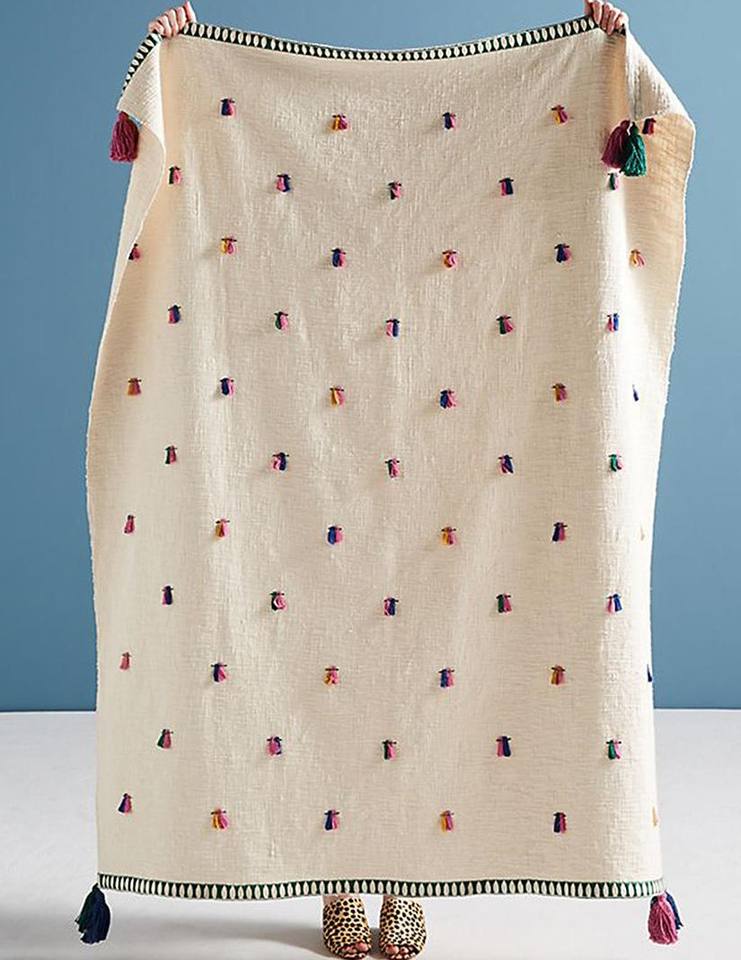 Manta Decorativa Tejida a Mano de Chenilla de Algodón con Borlas Estilo Boho – Manta Decorativa para Sofá y Hogar
